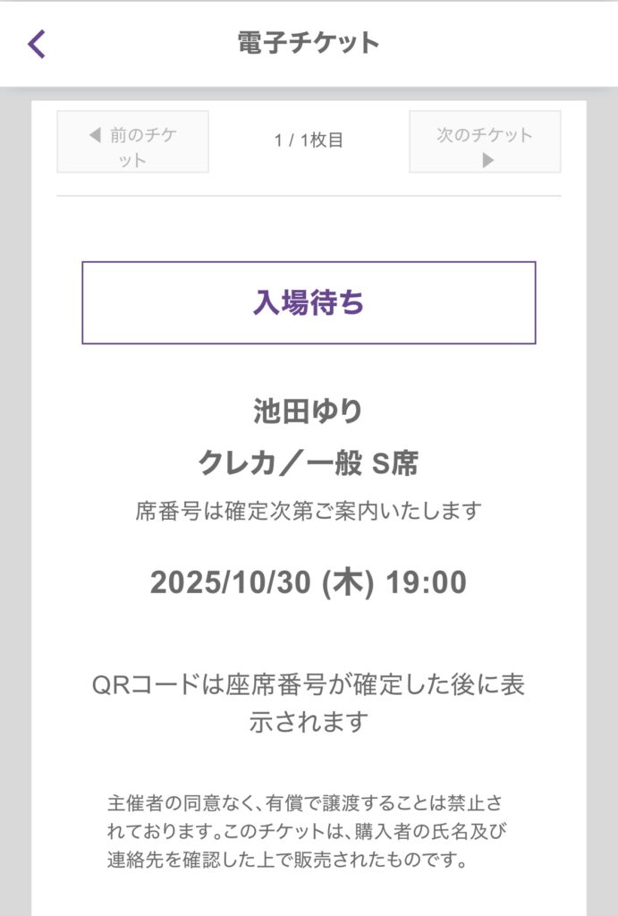以下の画像のような表示であれば、チケットにQRコードは表示されません。