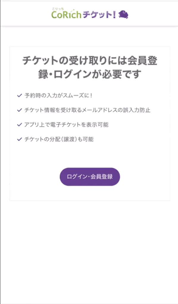 チケットの受け取りには、CoRichチケット!への会員登録とログインが必須です。