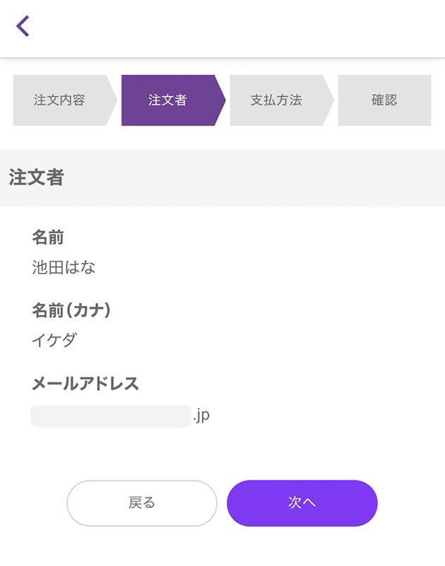 会員登録されているお客様の情報(氏名、メールアドレスなど)が自動で表示されます。