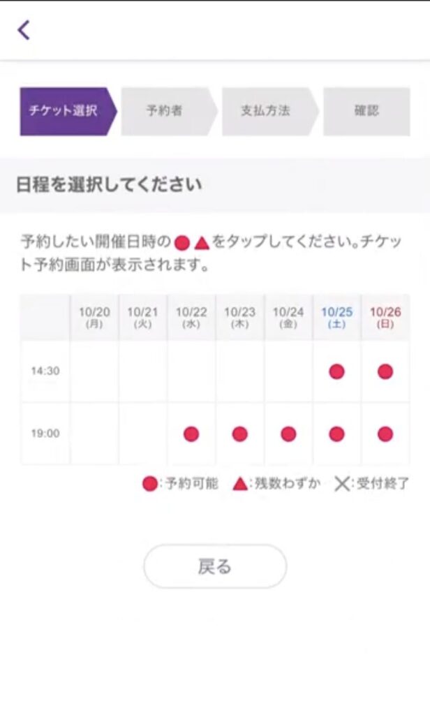 観たい公演が見つかったら、その公演のエリアをタップして詳細画面に進みます。