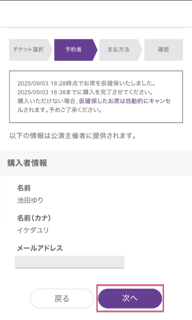 ※この時点でお席は一時的に確保されます。画面に表示されている時間内に購入を完了してください。
