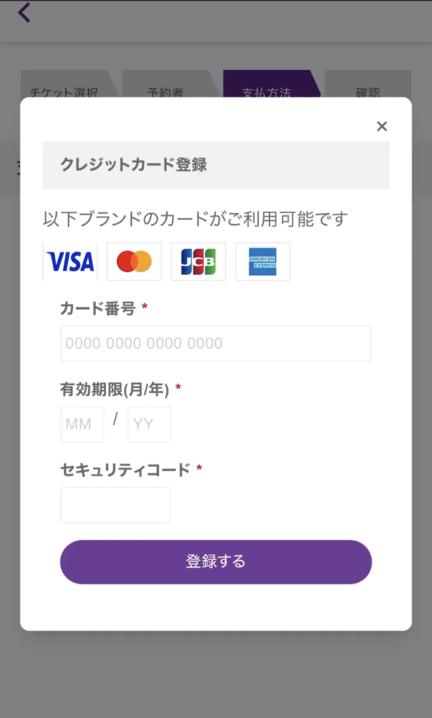 ポップアップ画面が表示されたら、カード情報を入力し、「登録する」ボタンをタップします。