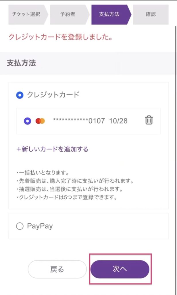 「チケットの購入が完了しました」というメッセージが表示されたら、手続きは完了です。