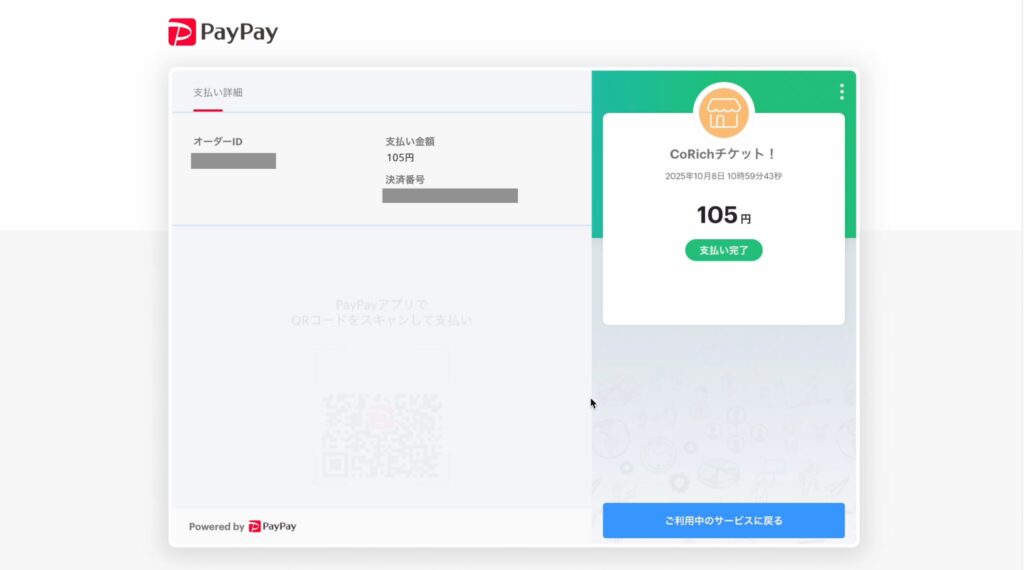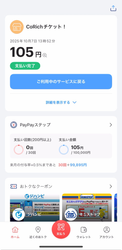 支払いが完了すると、自動でCoRichチケット!の画面に切り替わります。