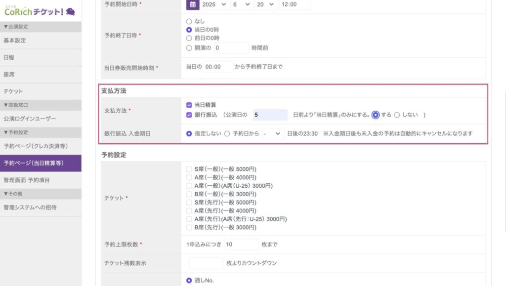 公演直前のみ当日精算に切り替えられますか?
