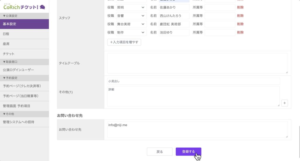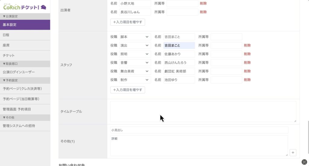 公演が登録できたら、次はその中身を充実させていきます。