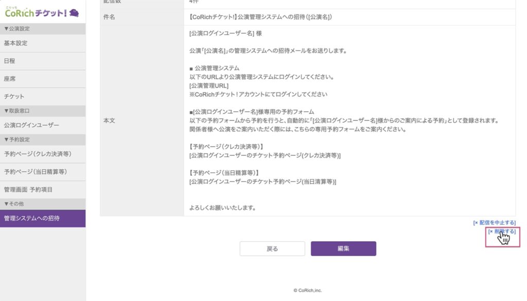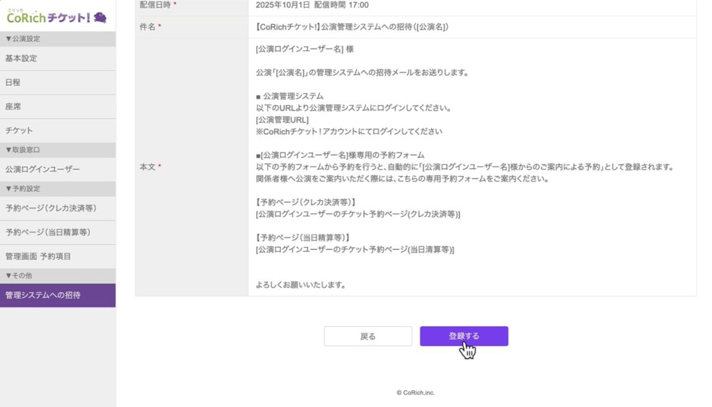 以上が、CoRichチケットの「管理システムへの招待」機能の基本的な使い方です。