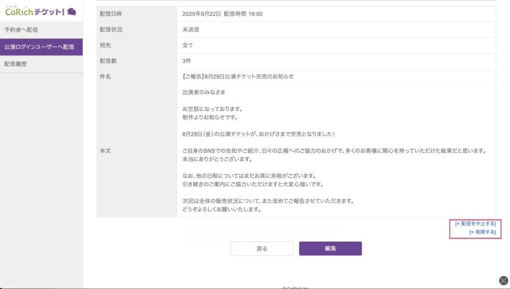 配信予約の管理(中止・削除)