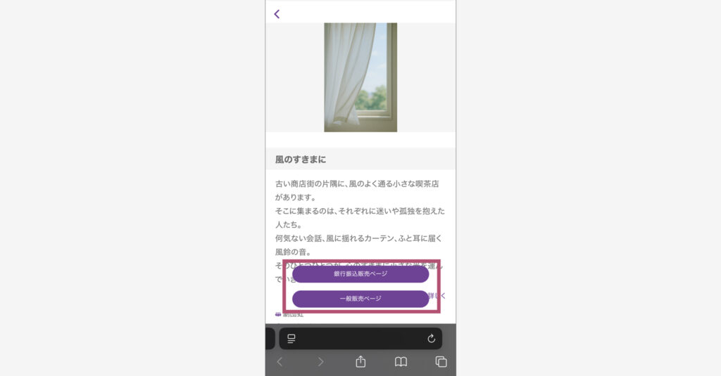 生成された共通URLから、お客様側の画面がどのように見えるかを確認できます。ステップ2で「対象」に設定した予約ページへのリンクボタンが並んで表示されます。