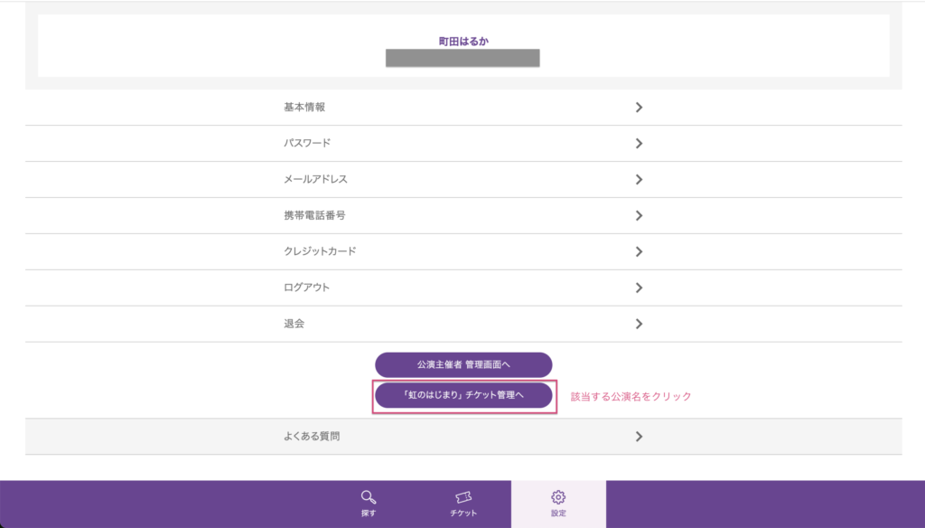 メールが見当たらない場合などは、CoRichチケット!にログインし、下タブ「設定」から、該当する公演の「チケット管理へ」のボタンをクリックしてください。