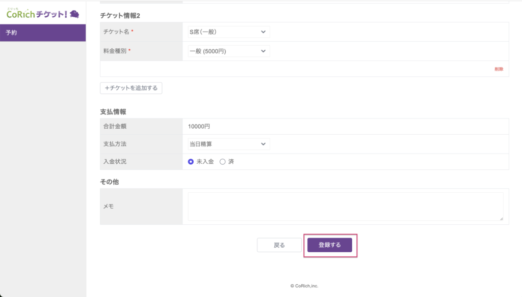 CoRichチケット!では、管理画面から簡単に予約情報を手動で追加できます。このページでは、予約管理画面から新しい予約を追加する手順を解説します。