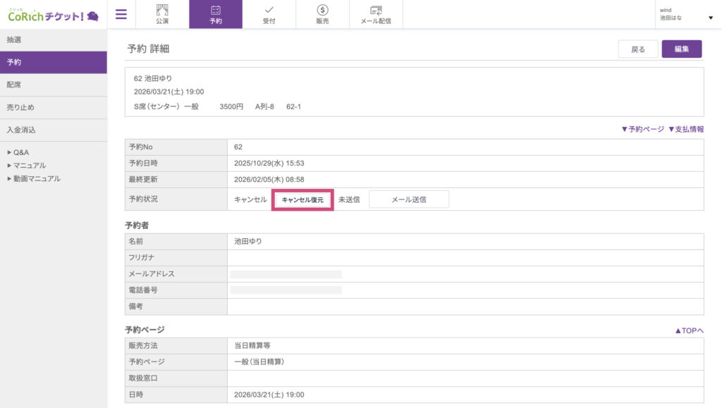このように、CoRichチケット!では一度キャンセルした予約を簡単な操作で復元することが可能です。