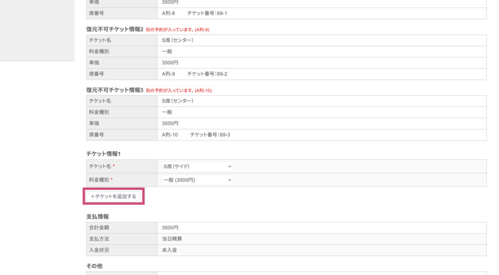 「+チケットを追加する」をクリックで他チケットの代替も選択します。