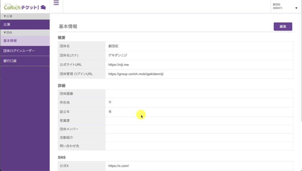 - 団体名: あなたの劇団や団体の正式名称を入力します。
