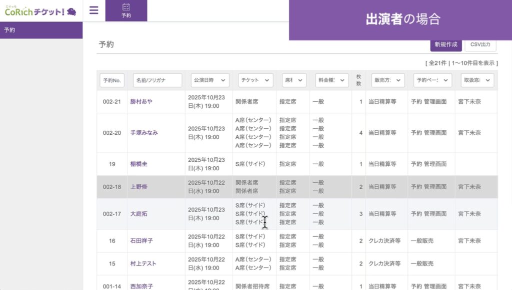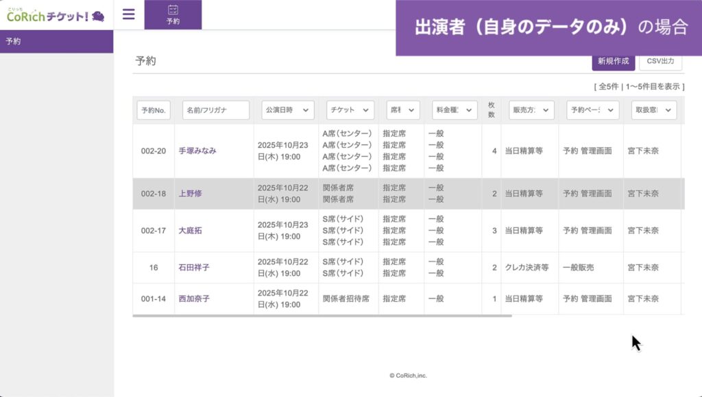 自分の取扱窓口の予約者の情報の閲覧ができます。