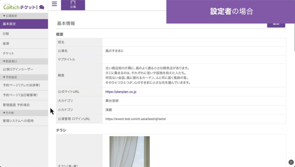公演に関する各種の設定を、管理者と同じように行うことができます。